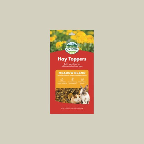 The Oxbow Hay Toppers Meadow Blend is a flavorful and wholesome way to elevate your guinea pig, rabbit, or small pet's hay time. Made with nutritious dandelion, aromatic calendula, and flavorful lemon balm, this blend adds variety to encourage natural foraging behaviors and increased hay consumption. Perfect for promoting healthy eating habits, it introduces new tastes and textures your pet will love. Crafted with care, this topper supports your pet's well-being while making mealtime more exciting. Give your furry friend a delicious and enriching treat with Oxbow Hay Toppers Meadow Blend!